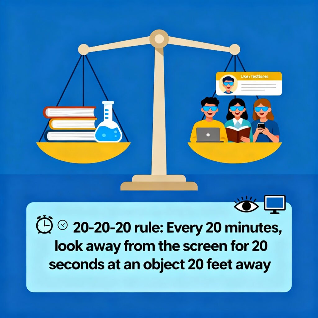 • Following the 20-20-20 rule (every 20 minutes, look at something 20 feet away for 20 seconds)