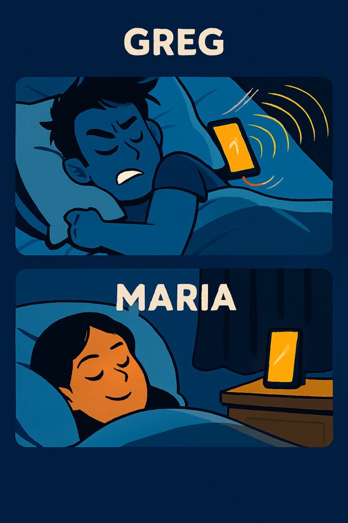 Maria, a graphic designer, discovered she couldn’t fall asleep when charging her phone right next to her bed. Following expert tips, she began charging across the room. “My tossing and turning halved within days,” she says.
